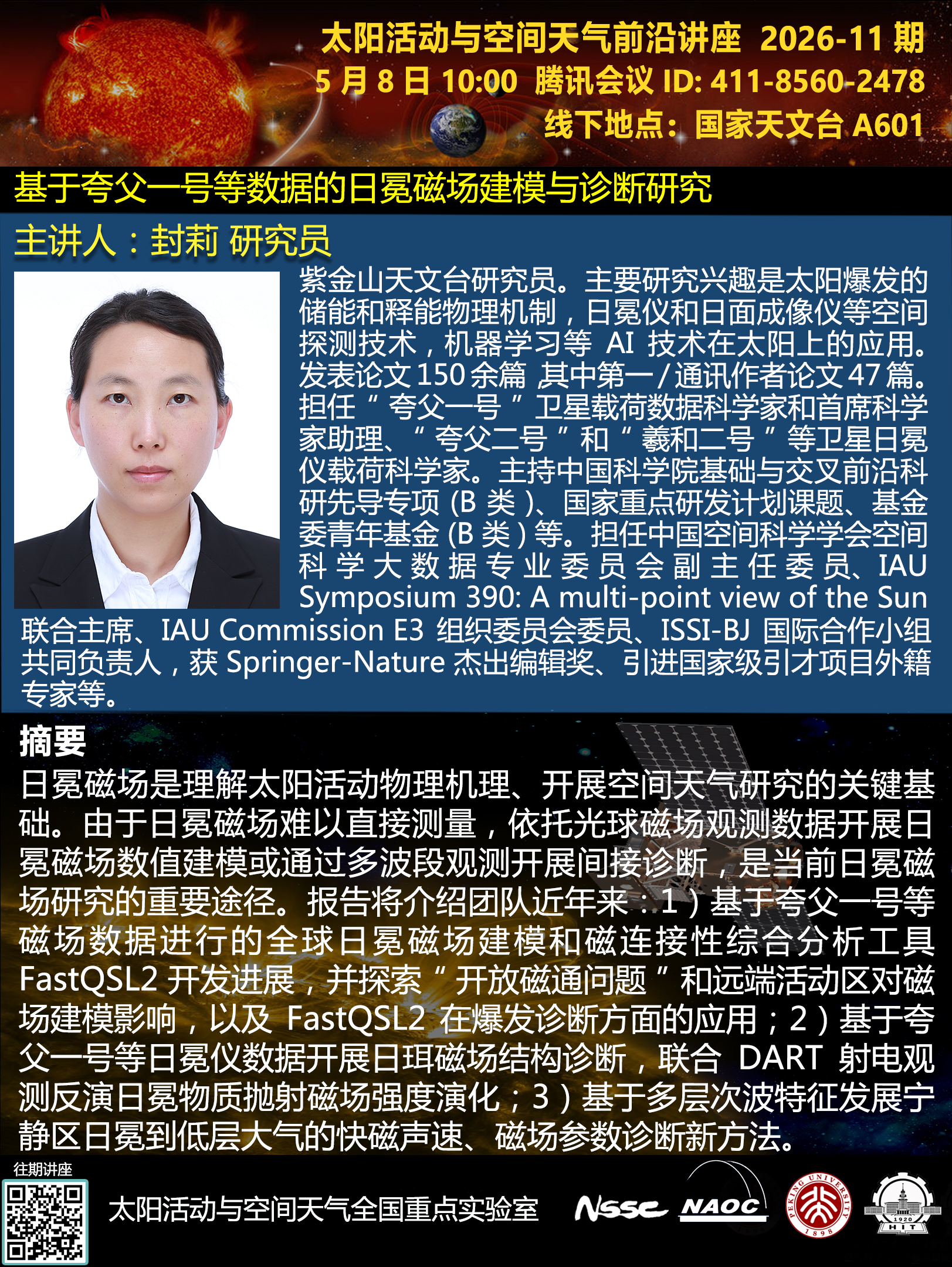 讲座题目:基于夸父一号等数据的日冕磁场建模与诊断研究