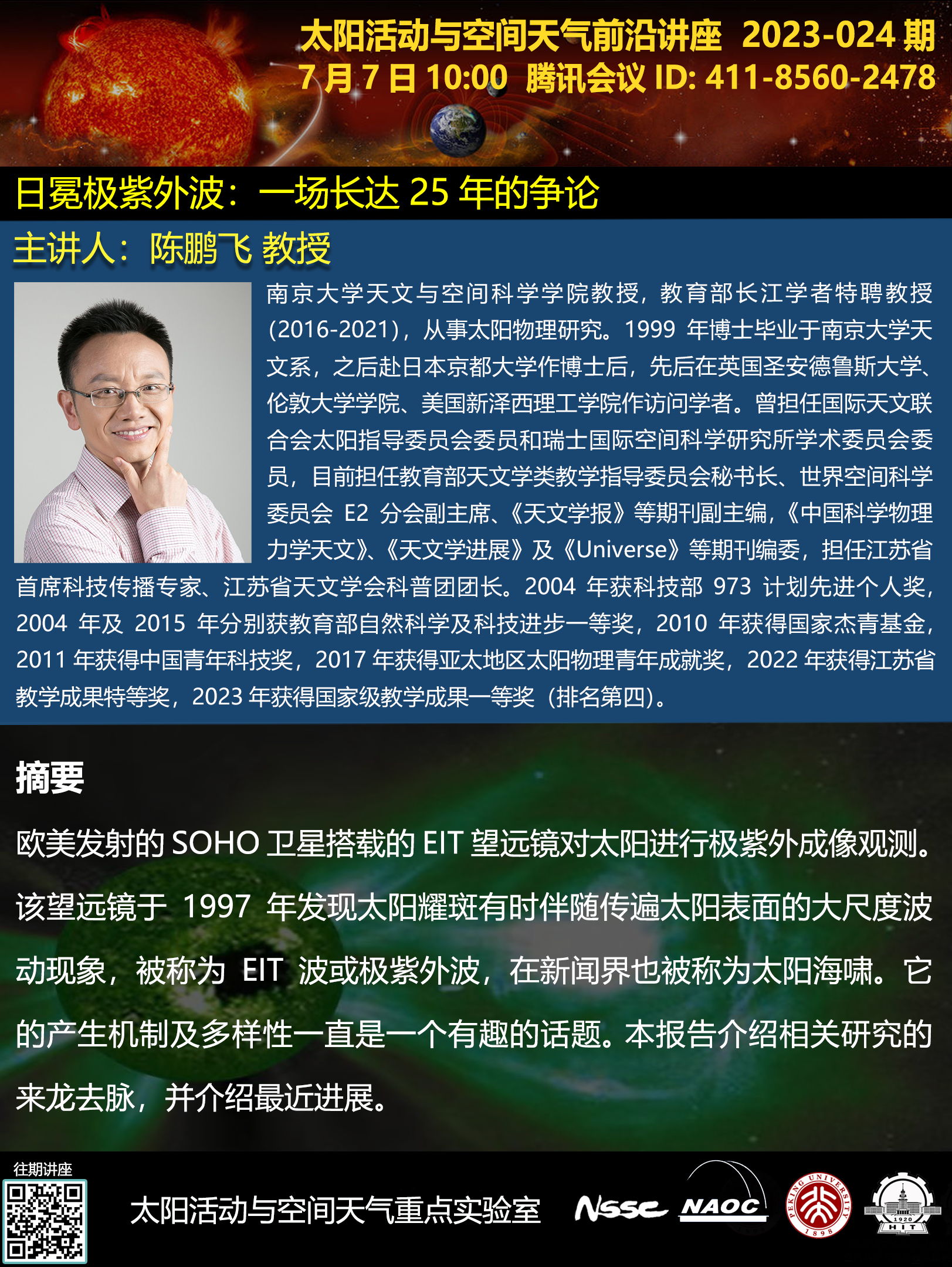 讲座题目:日冕极紫外波:一场长达25年的争论