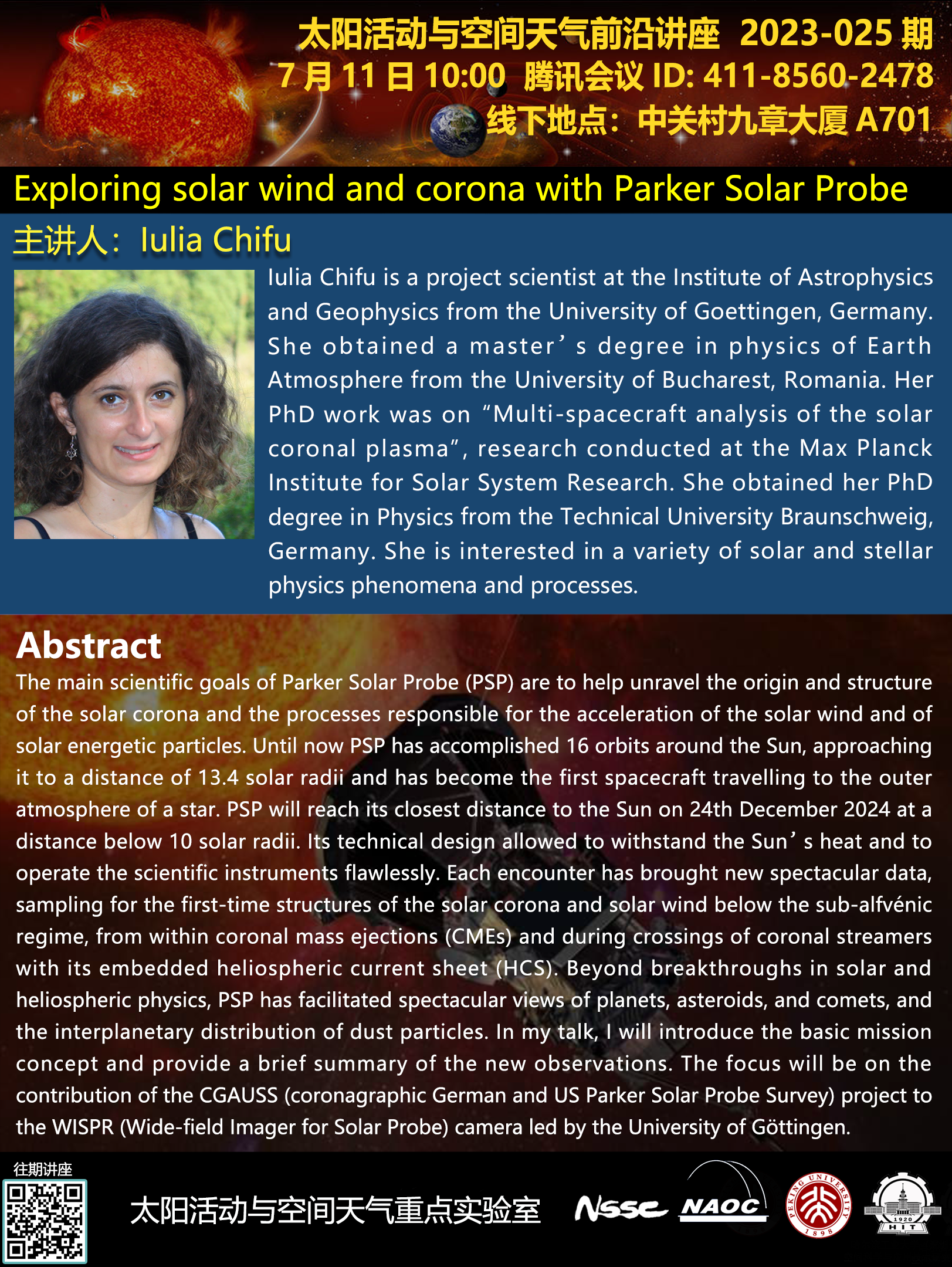 讲座题目:Exploring solar wind and corona with Parker Solar Probe