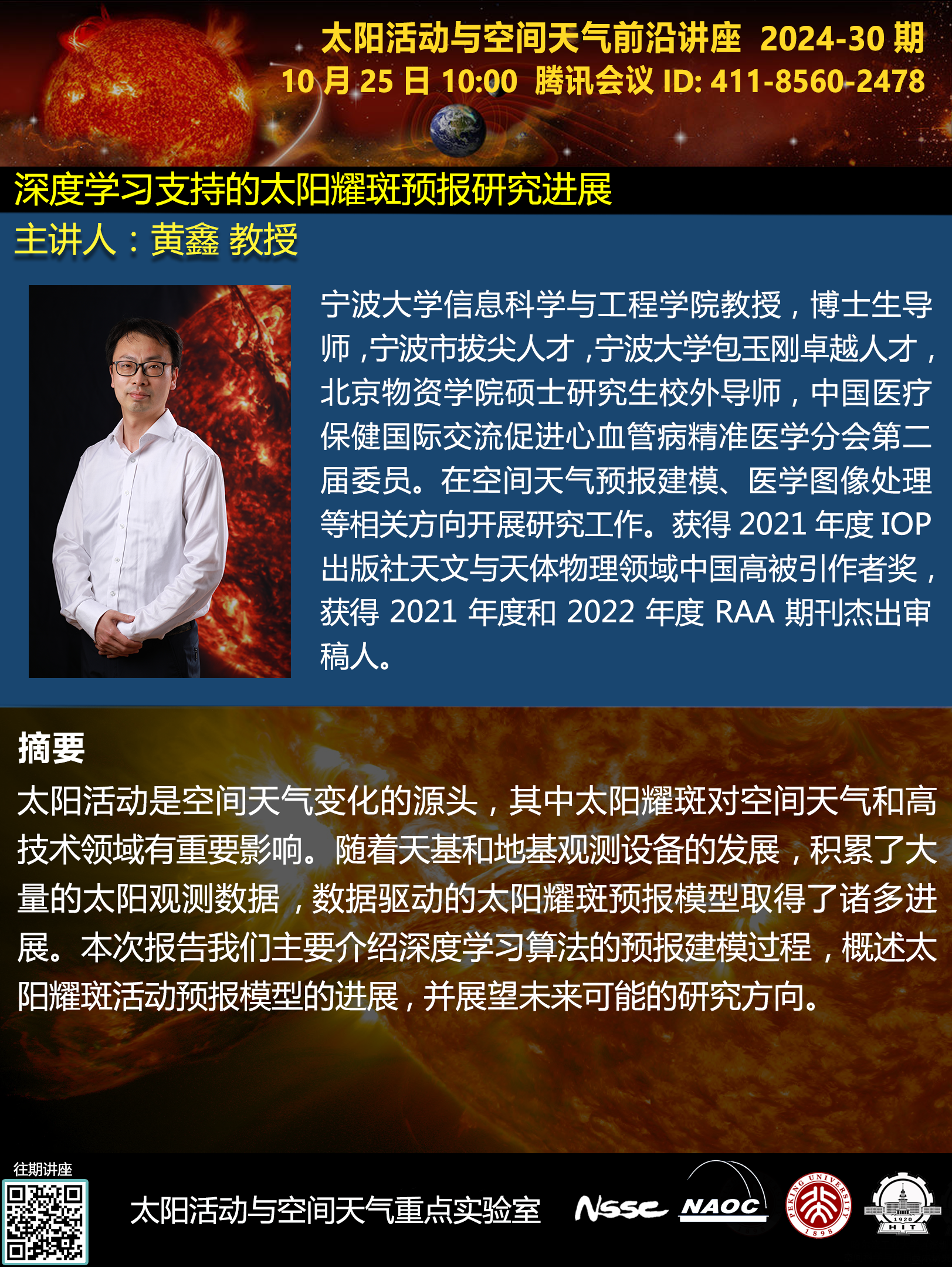 讲座题目:深度学习支持的太阳耀斑预报研究进展