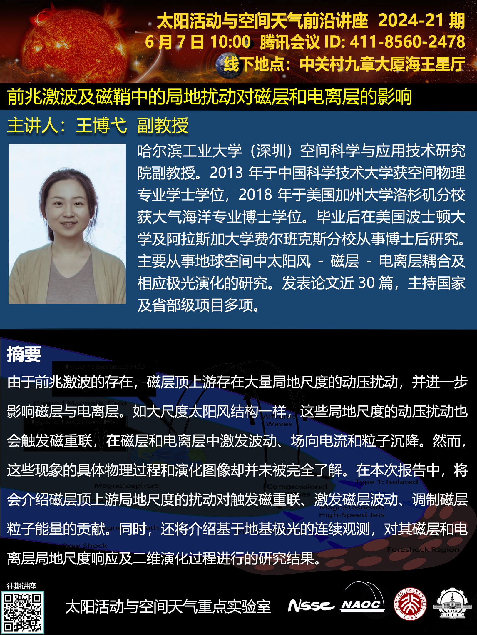 讲座题目:前兆激波及磁鞘中的局地扰动对磁层和电离层的影响