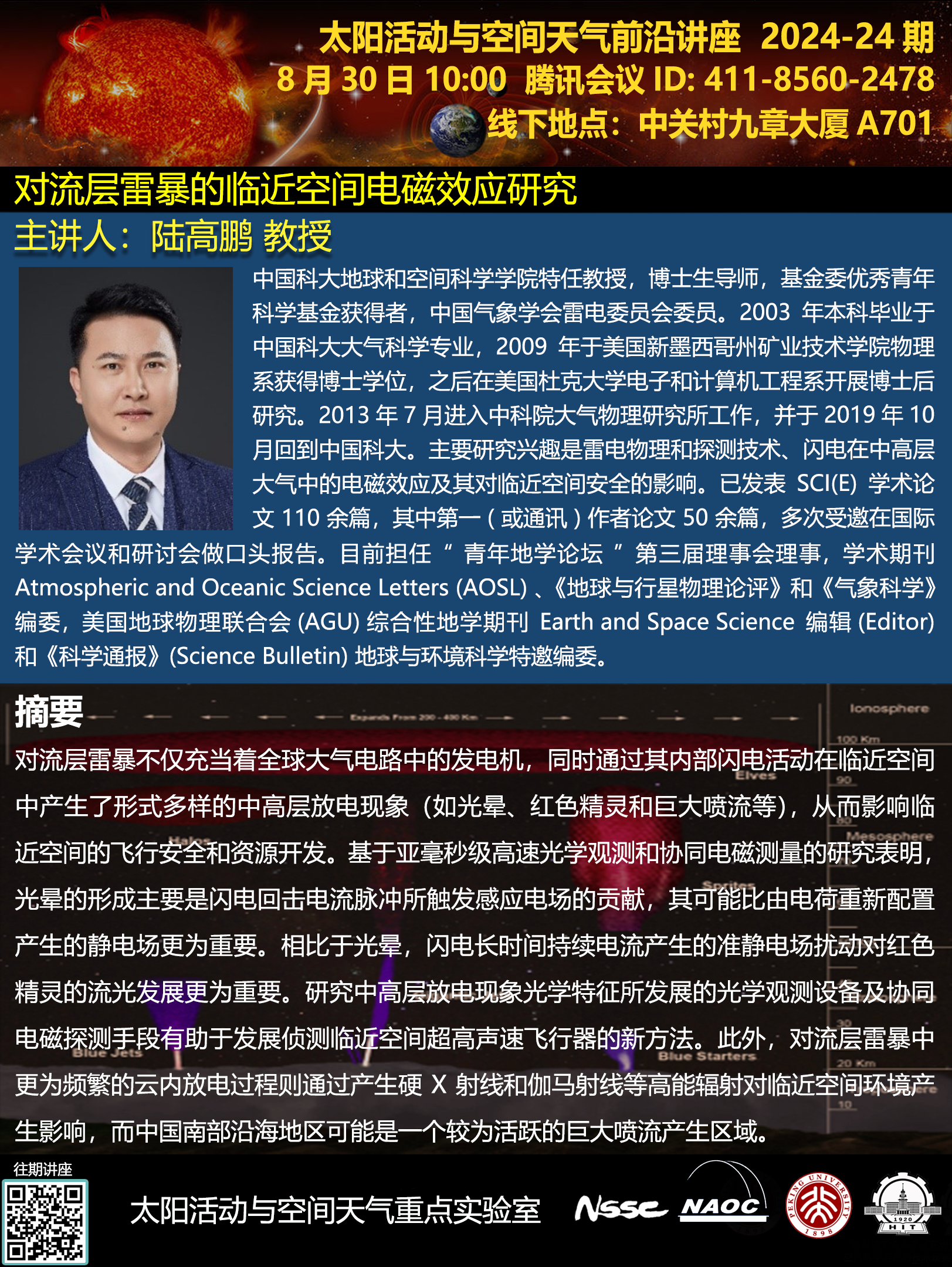 讲座题目:对流层雷暴的临近空间电磁效应研究