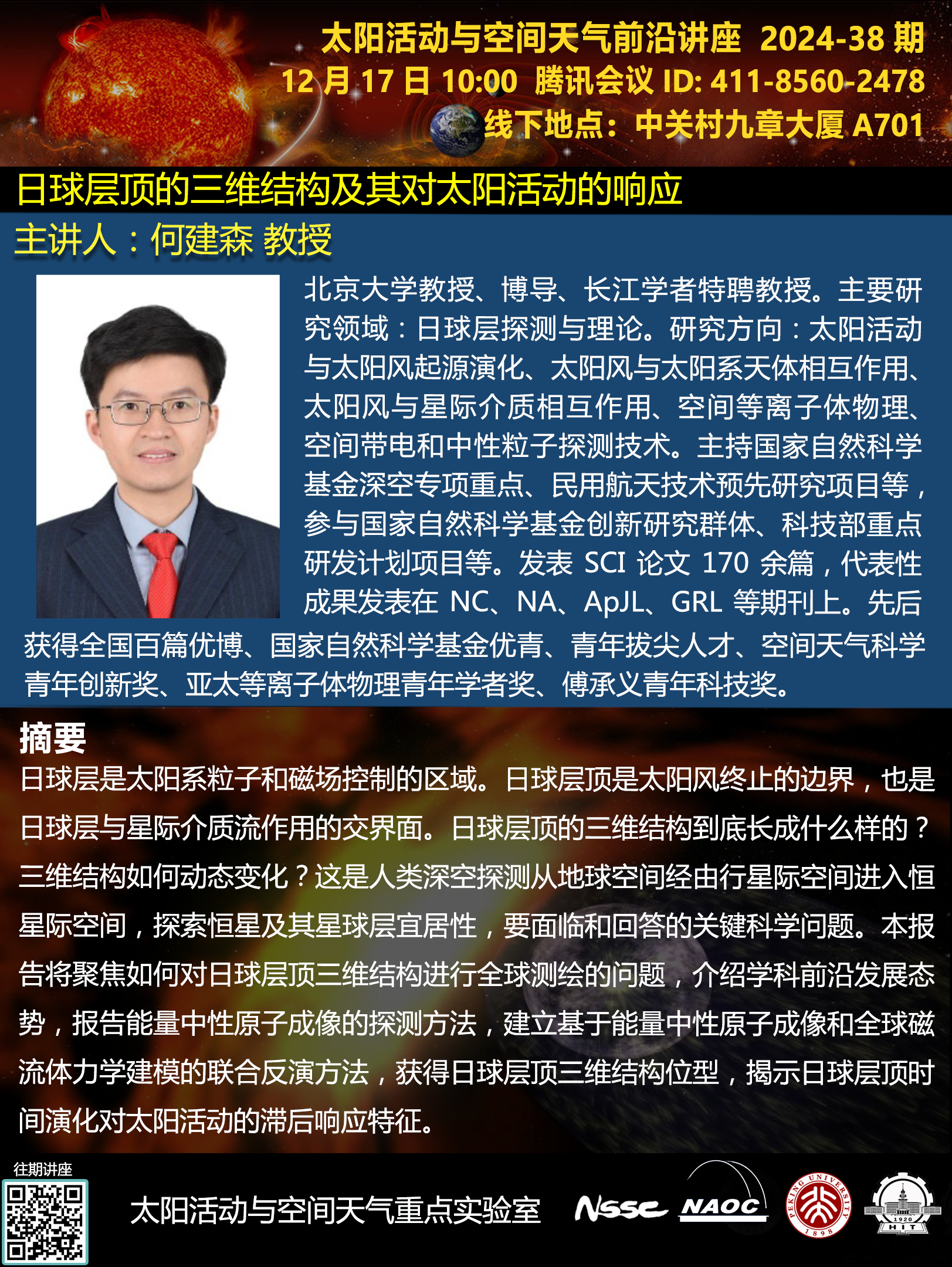 讲座题目:日球层顶的三维结构及其对太阳活动的响应