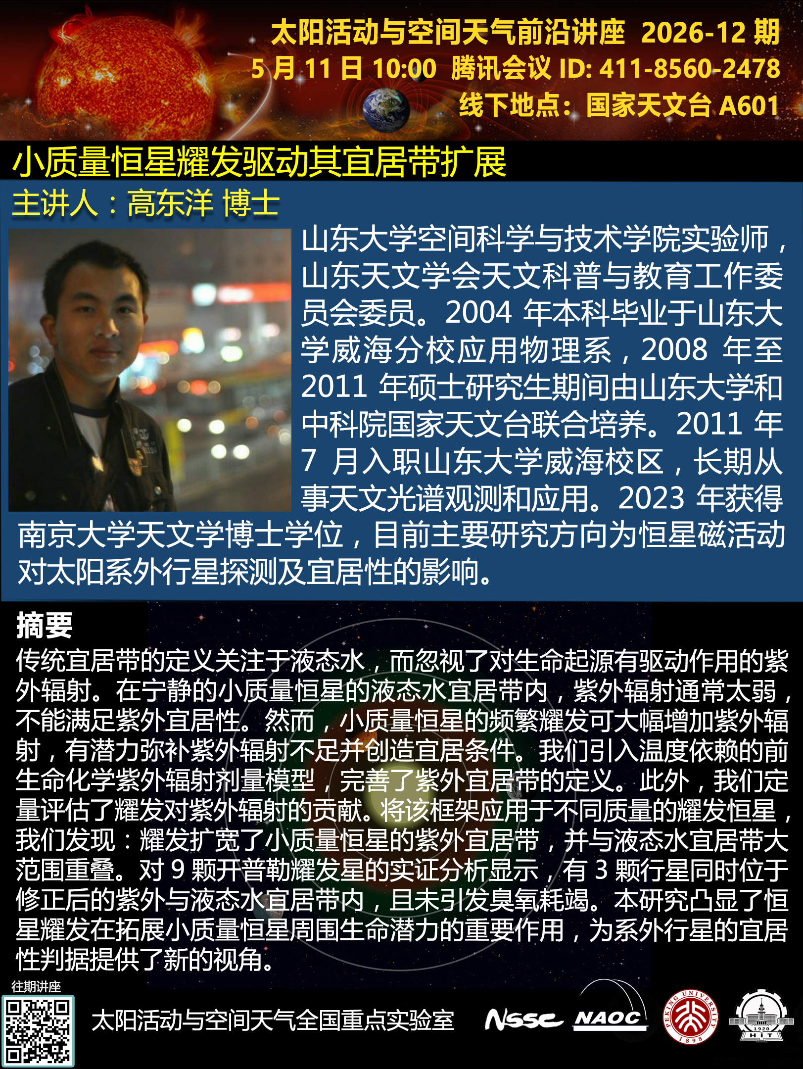 讲座题目:小质量恒星耀发驱动其宜居带扩展